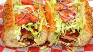 Chicken Tenderloins, layer of Mayo, American Cheese, Lettuce, Tomato, Red Onions and ...